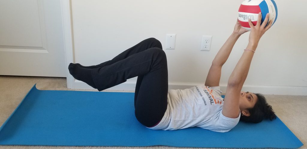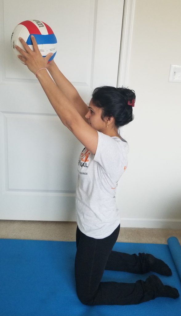 - Alternately, you can hold a ball in your hands and raise it over your head